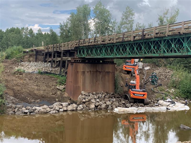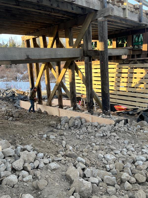 - Excavate sloughed materials from erosion caused by flood in 2017 along with gullying and erosion also occurring on the embankment and around upslope piers from highway runoff.