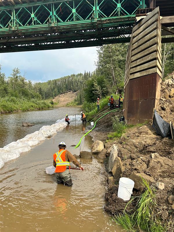 - Installation of poly lined meter bags for stream isolation to conduct required fish salvage.