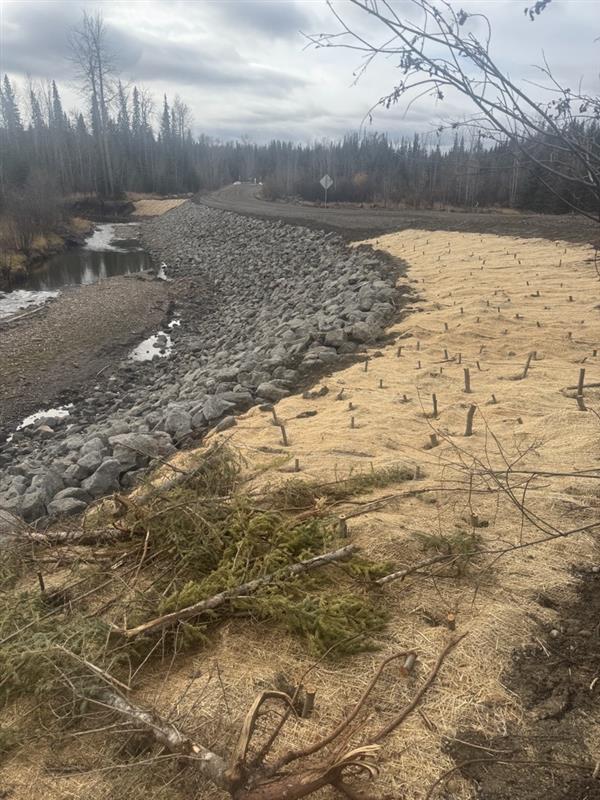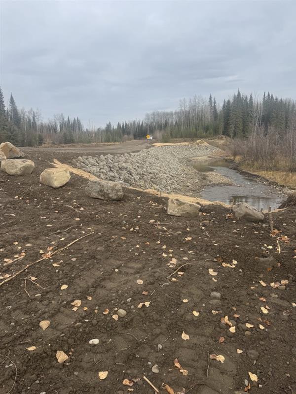 Had to set meter bags into the creek with a crane to establish the isolation, reestablish shoulder along the embankment that had eroded. Install rip rap to shore and protect the new embankment fill