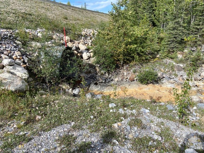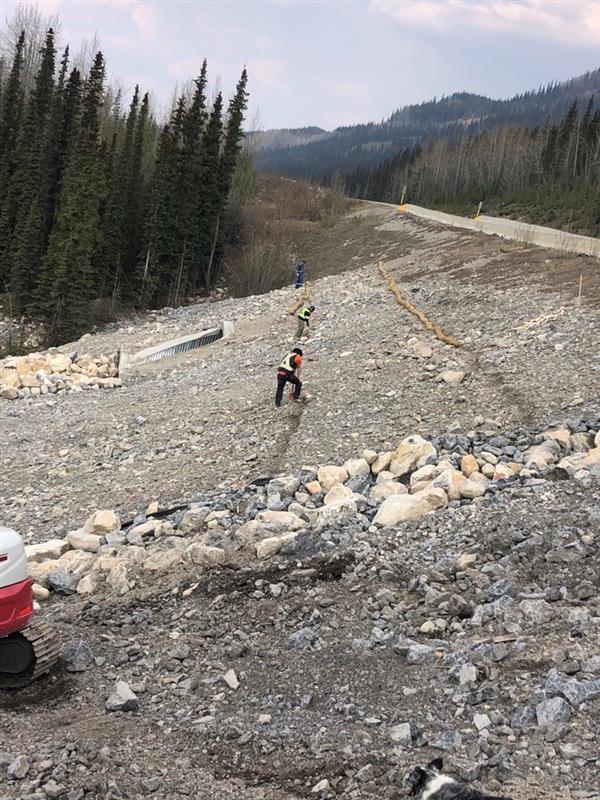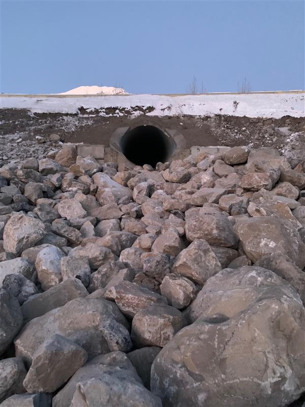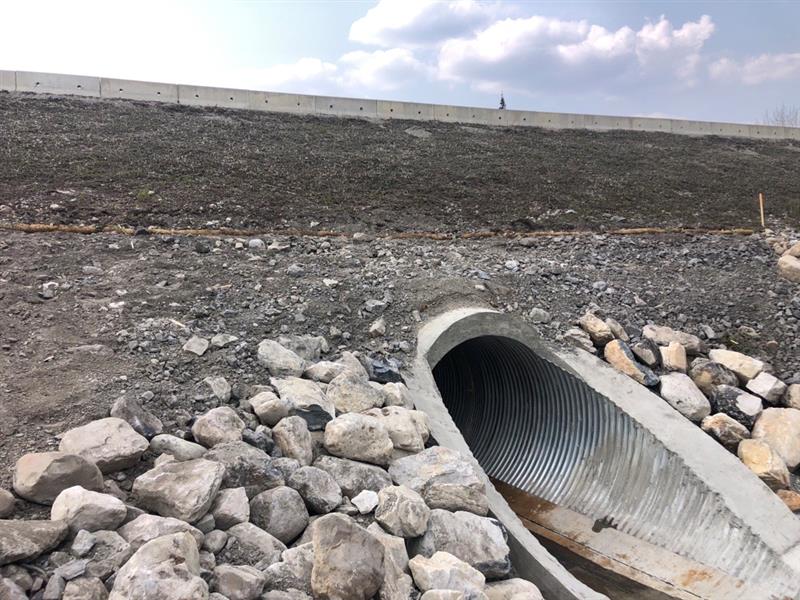 - Completed side slope improvements to reinforce slope integrity at outlet end and place 150 mm granular cover; and,