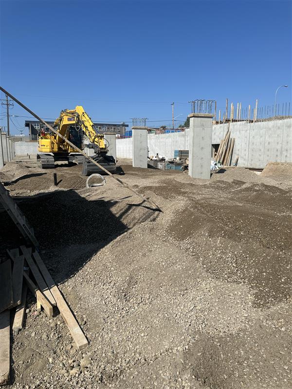 - Parkade ramp excavation and offsite disposal. Ramp preparation including subgrade, 19 mm crush and 6 mil polyethylene sheeting prep. Geosynthetics if required will be extra.